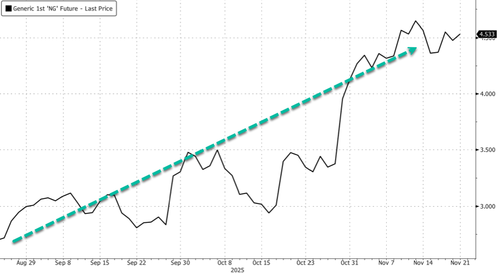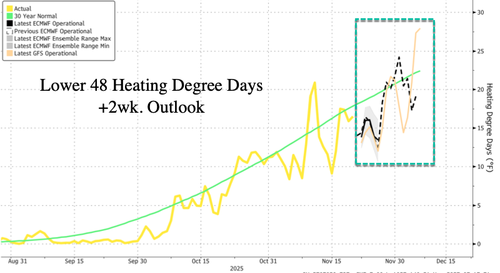 The reason: Lower 48’s Heating Degree Days, a simple weather-based metric used to estimate how much energy people will need to heat homes and buildings, is also up and to the right.