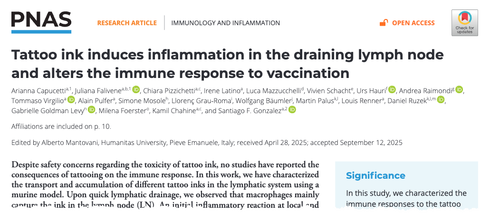 A new study shows tattoo ink drains into the lymphatic system and accumulates in lymph nodes, diminishing the effects of immune cells. This accumulation of ink pigment triggers both local and systemic inflammation that persists for months.