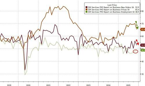 Under the hood was also mixed (completely opposite) news with ISM seeing Prices Paid dropping bigly (S&P Global seeing it rise), ISM seeing new orders decline (S&P Global seeing improvement) and ISM seeing employment still contracting (S&P Global sees ‘solid increase’ in employment)…