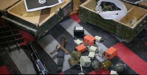 Photos from the raids published on the SANA website show printed papers showing the ISIS logo carefully placed on top of explosives and weapons allegedly seized in the raids, as well as action shots of security force members running in the street.