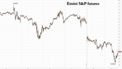 While traders have been able to get past a whirlwind of other unexpected developments this year, the standoff over Greenland is giving even the biggest bulls a jolt, with no off-ramp yet and forcing the biggest overnight selloff in US futures this year. Trump’s push to take control of Greenland, and renewed trade war with Europe, has injected fresh volatility into markets, reviving fears of a trade confrontation between traditional allies with little sign of compromise. Adding to tensions, Trump overnight threatened to impose steep tariffs on champagne after French President Emmanuel Macron ruled out joining a US-led peace initiative.