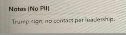 The Daily Wire spoke to multiple FEMA officials who produced screenshots of entries like “Trump sign, no contact per leadership”: