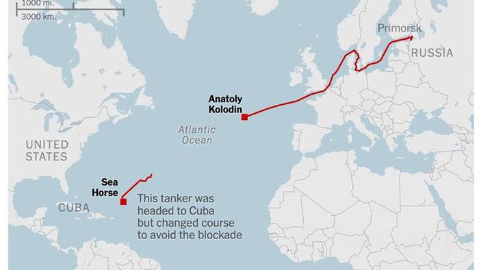 The Russian-flagged, state-owned tanker the Anatoly Kolodkin departed March 8 from Primorsk, Russia, carrying 750,000 barrels of crude that, once refined, could provide Cuba with several precious weeks of energy. Britain’s Royal Navy tracked the ship and its Russian naval escort through the English Channel. Then the escort veered off and the vessel continued its journey solo.