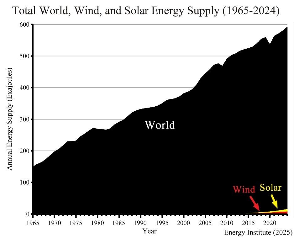 What have 30 UN climate conferences accomplished since 1995? The answer is “no measurable climate benefit.” Since 2000, the world has spent about $10 trillion on renewable energy, but hydrocarbons─coal, natural gas, and oil─still provided 87 percent of world energy in 2024 according to the Energy Institute.