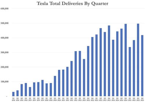That internal survey of 20 analysts projected 422,850 deliveries for the quarter, far below the broader public consensus at the time, which ranged from roughly 440,000 to 450,000 vehicles. Even Tesla’s lowered benchmark proved too high.