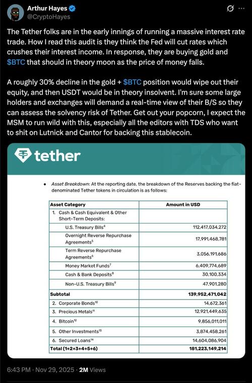 “Tether had, at the end of Q3 2025, about $7 billion in excess equity, on top of the about $184.5 billion in stablecoin reserves, plus about another $23 billion in retained earnings as part of our Tether Group equity.