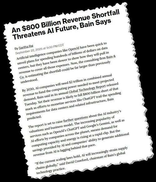 Three weeks ago, in “The Stunning Math Behind The AI Vendor Financing “Circle Jerk” (which in turn referenced our analysis from late July when seemingly nobody cared who will fund this tidal wave of looming datacenter spending), we explained how even an optimistic outlook on the AI industry and its gargantuan capex needs, reveals that there is an $800 billion funding need by the end of the decade.