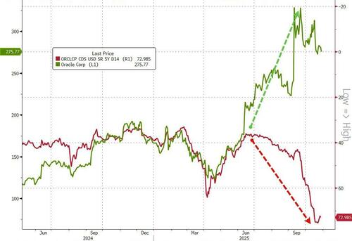 And the canary in the coalmine is the surge in credit spreads that is evident in Oracle as we remind readers that both of these measures are directly linked to asset valuations and volatilities of the underlying business… meaning one of them is ‘wrong’.