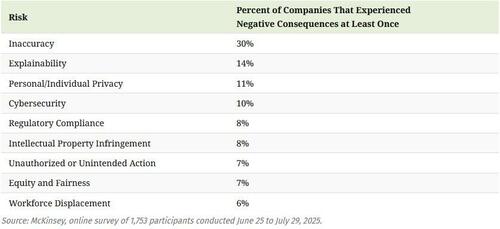 Inaccuracy is the biggest risk companies report, with almost a third experiencing a negative consequence at least once.