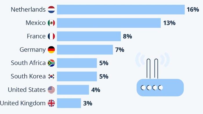 According to data collected by Statista Consumer Insights, 16 percent of Dutch online respondents said that they mainly access their internet at home via their neighbor or landlord’s wireless connection.