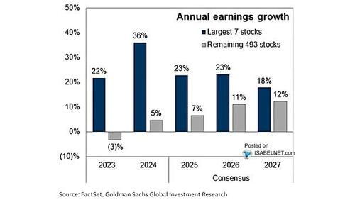 “Wall Street currently expects the bottom 493 stocks to contribute more to earnings in 2026 than they have in the past 3 years. This is notable in that, over the past three years, the average growth rate for the bottom 493 stocks was less than 3%. Yet over the next 2 years, that earnings growth is expected to average above 11%.”