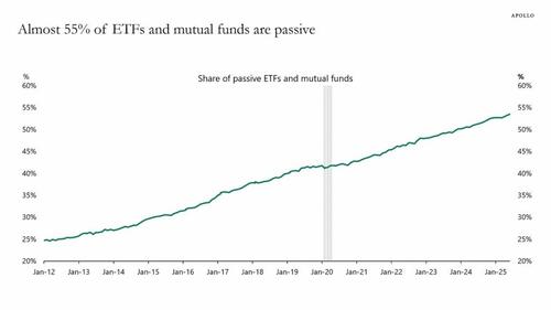 But as we know, valuations mean very little in the short term during the fevered pitch of an investing mania. However, in the long term, valuations indicate future outcomes. Given the current levels, does it potentially make this era even more dangerous than 2000 or 2007? Maybe, yes. That is because the underlying structure has changed. We now have a market where capital flow is automated, valuation discipline is eroded, and active managers are fading. The passive tsunami has erased Ben Graham’s “margin of safety” while the narratives (AI, debasement, central banks as saviors, etc.) dominate. All that’s left is momentum and sentiment, and when momentum flourishes in a weakened system, it is a powder keg.