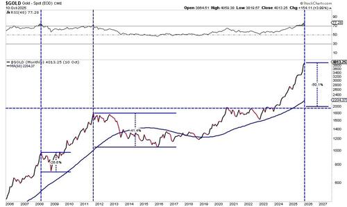 In Gold, a 30 to 50% correction would be well within historical norms of corrections that followed more extreme overbought conditions driven by speculative fervor.