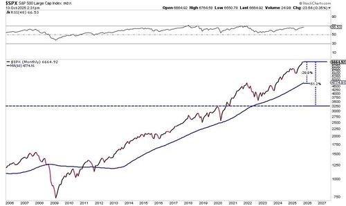 Begin with risk. While it may seem like it can’t happen, assume a 30% to 50% drawdown. In the S&P 500, a 30% retracement would only reset the market to the current bullish trend line from 2009. A 50% retracement would only reset markets to the beginning of 2020.
