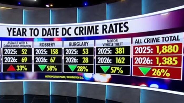 Stunning new statistics from Washington, D.C. showcase the ongoing triumph of President Trump’s law-and-order agenda. Year-to-date figures for 2026 compared to the same period in 2025 paint a picture of decisive victory over crime, with homicides plummeting 80%, robberies down 58%, burglaries reduced by 28%, motor vehicle thefts slashed 57%, and overall crime dropping 26%.