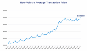 The average price paid for a new vehicle in September topped $50,000 for the first time ever, Cox Automotive’s Kelley Blue Book reported. While tariffs have increased costs and reduced affordability, the record prices in September were driven by strong sales of all-electric vehicles (EVs). Consumers rushed to buy EVs ahead of federal tax incentives of up to $7,500 ending at the end of September. EVs are more expensive than their traditional counterparts. The average transaction price for a new electric vehicle in September was more than $58,000. Besides higher sticker prices, new car buyers are seeing smaller discounts and higher loan rates since the coronavirus pandemic. The average new auto loan rate was about 9% as of the most recent data from August, according to Cox Automotive’s Dealertrack.