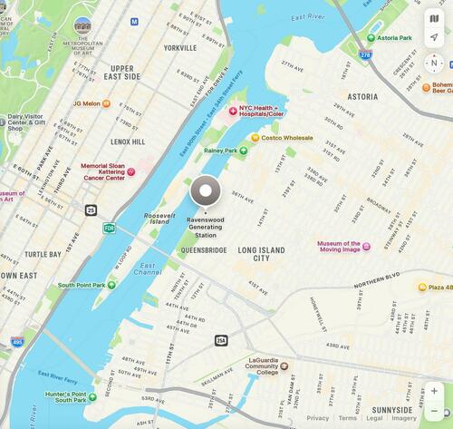 The Convergent Energy Warwick energy storage facility has a capacity of 12 MW and 57 MWh. Meanwhile, back here in New York City, there are plans, well advanced (although not quite yet under construction), to build a much larger grid battery storage facility in Ravenswood, Queens. That would be right on the East River, directly across from East Midtown and the Upper East Side of Manhattan: