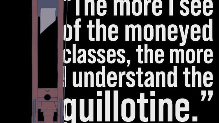 We need to keep in mind there are only 3,000 billionaires on this planet and only a few hundred fall into the category of psychopaths in suits. Yes, they live in gated palaces with ample security forces, but the common folk of this country own over 300 million firearms. If or when they feel they have nothing left to lose, the protected privileged classes should start to worry. Their gates will protect them from the consequences of their actions. We may decide to Make Guillotines Great Again.