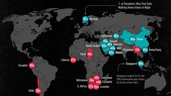 This graphic, via Visual Capitalist’s Dorothy Neufeld, shows the world’s safest and least safe countries, based on Gallup’s Global Safety Report 2025.