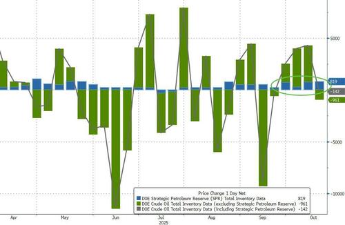 As we detailed yesterday, the Trump administration announced plans to buy 1 million barrels of crude to add to the SPR. As the chart below shows, that’s not exactly ‘unprecedented’ as weekly additions have been around 500k barrels all year. The 819k barrel addition last week was not quite enough to offset the961k barrel decline from DOE…