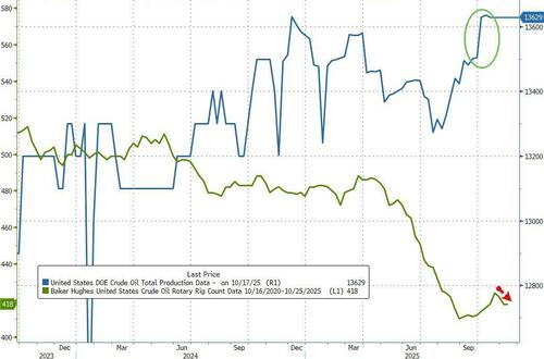 US crude production hovered near record highs (as the rig count started to decline again)…