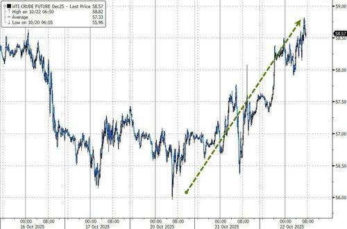Bloomberg notes that oil still remains on track for a third monthly loss as signs of a global surplus put downward pressure on prices, though that’s provided an opportunity for the Trump administration to buy crude for strategic reserves.