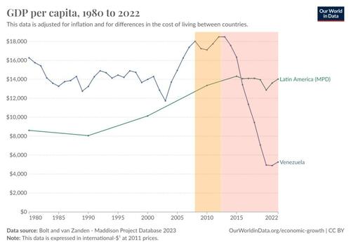 Many Western observers, from Senator Bernie Sanders to director Oliver Stone, saw this as a sign that socialism works. But the reality is that Venezuela’s oil-fueled boom had only managed to bring incomes back to 1970s levels. Moreover, careful econometric analyses comparing Venezuela’s performance to that of other similarly situated countries, found that Venezuela consistently under-performed.