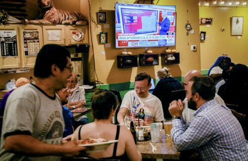Customers eat as they watch the election results at the Louisiana Pizza Kitchen in New Orleans on Nov. 5, 2024. In 2024, after the new Louisiana congressional district map was introduced, the GOP won four of the state’s six congressional seats, one fewer than in 2022. Sandy Huffaker/AFP via Getty Images