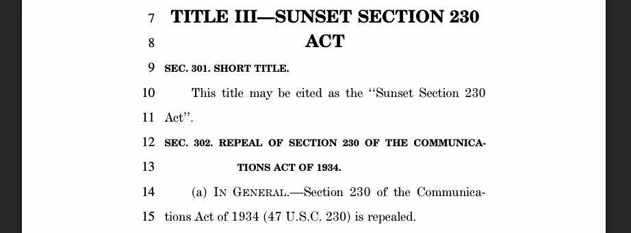 At the center of the bill is the full repeal of Section 230 of the Communications Act—long considered the legal foundation of the modern internet.
