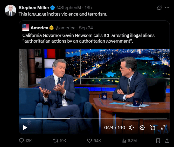 I mean, the same day this came out, Trump’s deputy chief of staff, Stephen Miller, claimed that calling out actual government authoritarianism somehow constitutes “incitement to violence.”