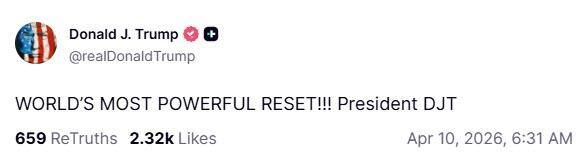 Trump Posts About “World’s Most Powerful Reset!!!”