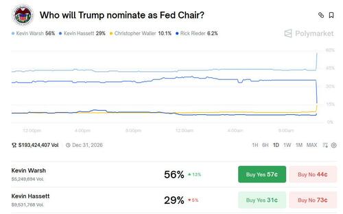 The news promptly sent Kevin Warsh’s Polymarket odds sharply higher while Hassett slumped.