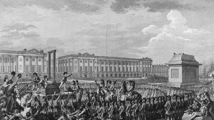 From Wikimedia Commons: Execution of Louis XVI (Charles Monnet, 1794)