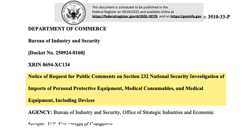 On Wednesday, the Department of Commerce confirmed that it had initiated a national security investigation into “Imports of Personal Protective Equipment, Medical Consumables, and Medical Equipment, Including Devices” under Section 232 of the Trade Expansion Act on September 2. The filing was published in the Federal Register.