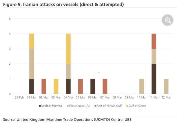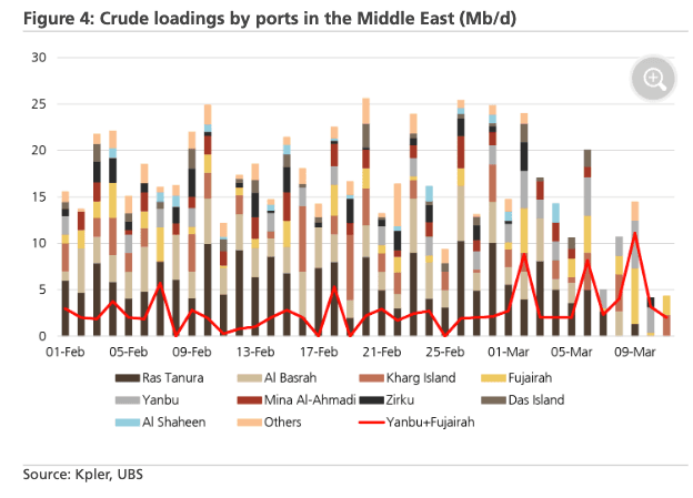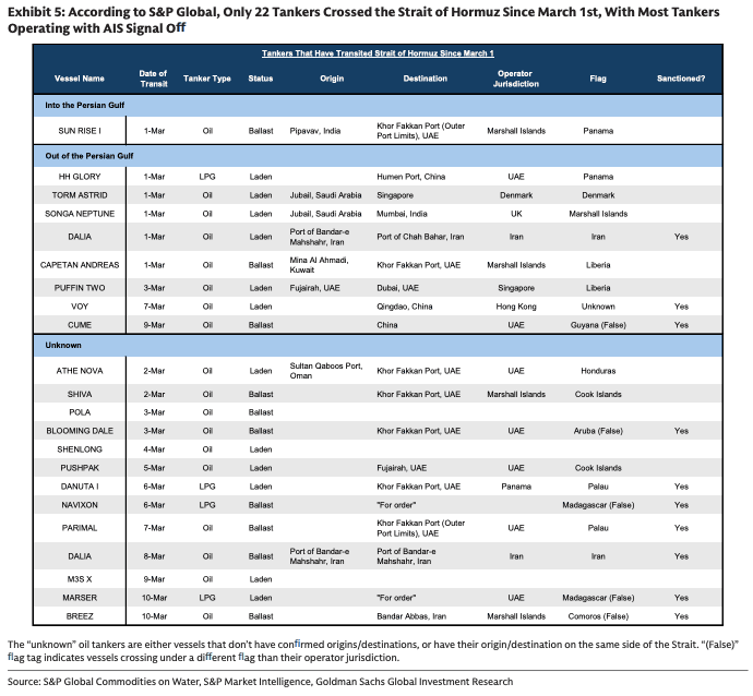 In addition to UBS, Goldman’s tracking of Persian Gulf exports also shows limited activity through the strait.