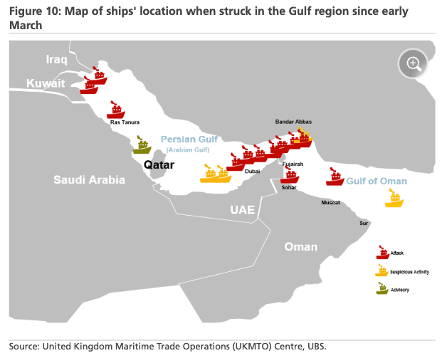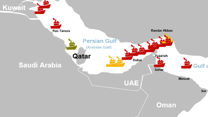 Map of ships’ locations when struck in the Gulf region since early March