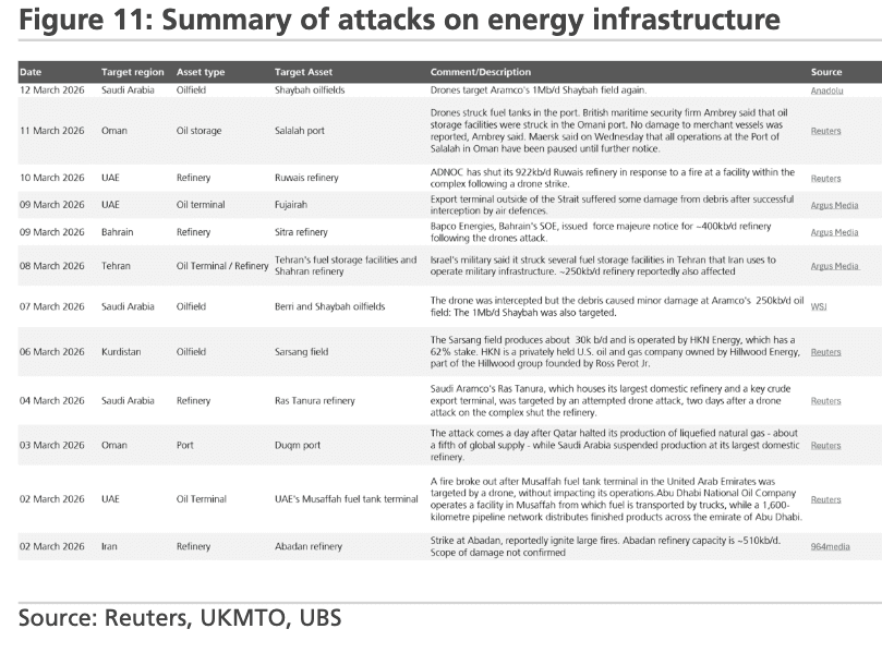 The estimated total hit to oil flows from the Persian Gulf stands at 16 mb/d (16 times larger than the peak April 2022 hit to Russian oil production).