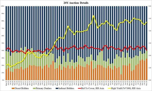 Ugly, Tailing 20Y Auction Sees Slide In Bid To Cover, Foreign Demand, As Directs Soar To Record