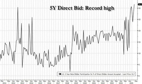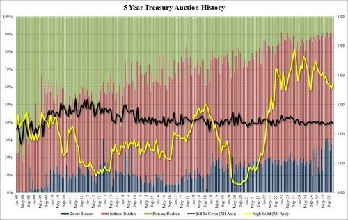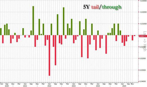 After a disappointing, subpar, tailing 2Y auction started off the last coupon week of the year, moments ago we got the week’s second auction, a $70BN sale of 5Y paper which was also disappointing.