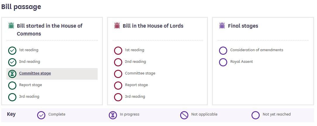 The legislation is still at the committee stage in the House of Commons. Source: UK Parliament