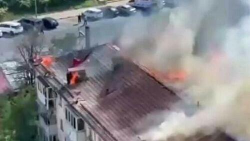Residential buildings were seen on fire as a result of Wednesday’s drone attack.