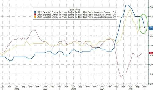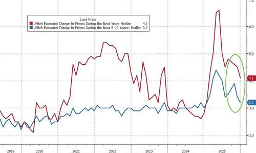 Year-ahead inflation expectations decreased from 4.5% last month to 4.1% this month, the lowest reading since January 2025. This marks four consecutive months of declines. Additionally, long-run inflation expectations softened from 3.4% last month to 3.2% in December, matching the January 2025 reading