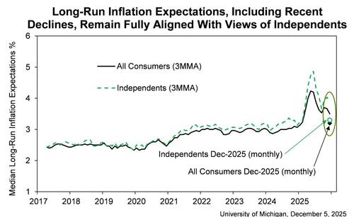 Simply put, UMich’s Hsu is forced to admit that consumers have noted that the soaring inflation they feared in April and May 2025 at the height of tariff developments has not come to fruition at this time.