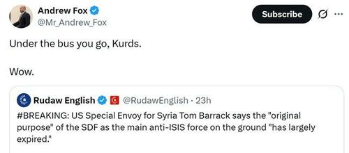 The US has been expressing annoyance with the Kurds for not quietly submitting to Sharaa’s rule for months now, with Barrack, as the representative of the US Federal Government, declaring that they had learned “federalism doesn’t work” and that the Kurds should abandon any hope of autonomy within Syria.