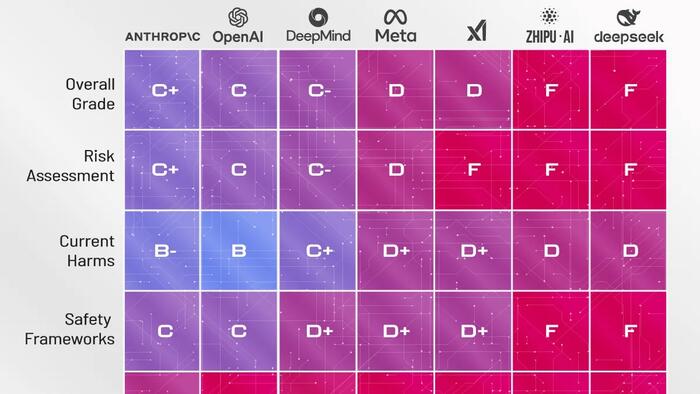 Based on the scores across six key metrics of AI safety, Anthropic, the creators of Claude, scored highest overall with a C+.