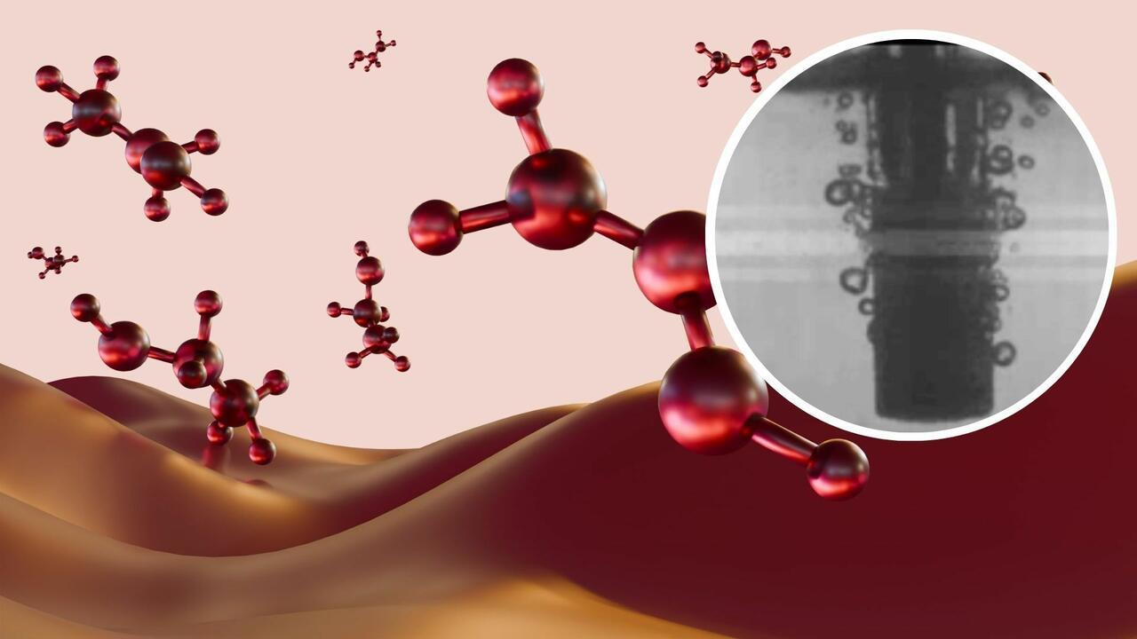 For the new single-step process, James Ho, a Ph.D. candidate in Swearer’s lab and the study’s first author, built a plasma “bubble reactor,” which is essentially a porous glass tube coated with a copper oxide catalyst. Then, the team flowed methane gas through the tube while applying electrical pulses.