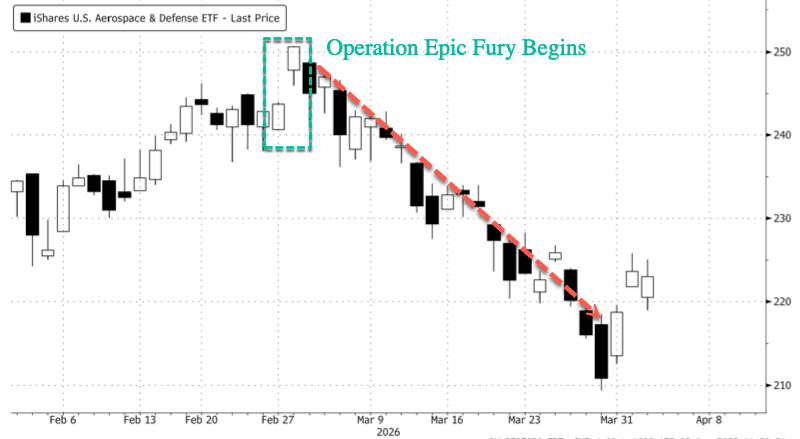 Despite the launch of Operation Epic Fury against Iran in late February, U.S. defense stocks have moved lower rather than higher, prompting a UBS analyst to pen a note to clients this week attempting to answer why the makers of missiles and tanks failed to sustain a wartime rally.