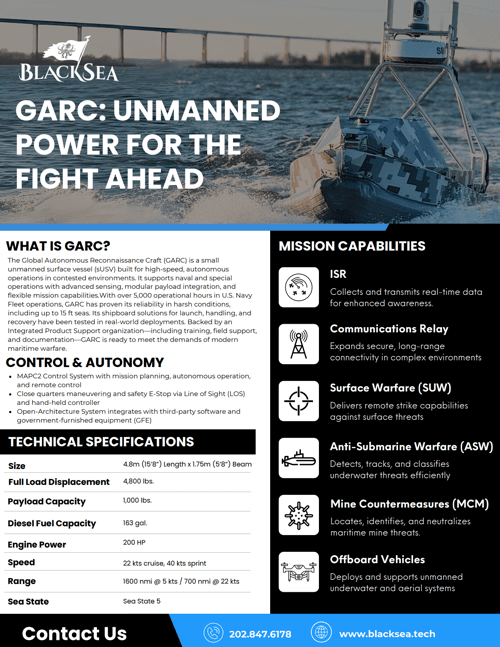 Tim Hawkins, a DoW spokesperson for Central Command, told the outlet that the drone boats deployed in the operation were built by Baltimore-based BlackSea and are known as the Global Autonomous Reconnaissance Craft, or GARC. He said the drone boats are being used for reconnaissance missions.
