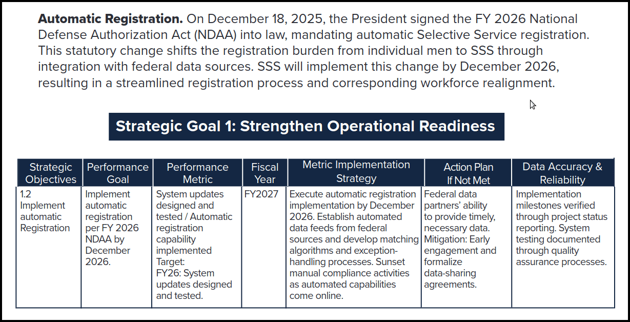 The law directing the SSS to try to register potential draftees “automatically” leaves most of the details to the SSS to establish through regulations. The SSS has completed the first step in this process by drafting proposed regulations and submitting them to the White House “Office of Information and Regulatory Affairs” (OIRA). OIRA has up to 90 days to review the proposed rules, approve them, or send them back to the agency for revision, but most OIRA reviews take significantly less time than this.