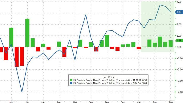 Core Factory Orders (ex-Transports) also rose 0.2% MoM, up notably from the downwardly revised 0.1% MoM decline in August (but remains up over 1% YoY)…